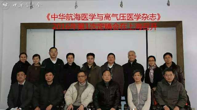 《中华航海医学与高气压医学杂志》2016年第1次定稿会于2016年1月22日在上海交通大学附属海科院召开,参加会议的专家有本刊主编褚新奇研究员,海军医学研究所张建国研究员,上海交通大学附属海科院张延猛副院长,上海交通大学附属海科院石路所长,第二军医大学徐伟刚主任,解放军第四一一医院许恒副院长,上海市第六人民医院张陆弟教授,海军医学研究所丁江舟研究员,海军医学研究所方旭东主任,海军医学研究所姚永杰主任,编辑部甘辉亮主任,彭润松、林永丽、张阵阵副研究员,莫琳芳助理研究员参加了会议。